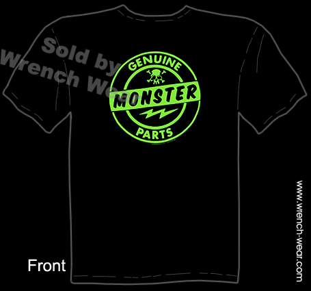 - 100% cotton Hot Rod Clothing Tattoo Tshirt is comfortable, durable, and preshrunk. - Silk screen artwork on this Genuine Monster Parts Kustom Kulture Tee for detail and longevity. - Hot Rod Clothing Tattoo Tshirt design is on FRONT. - Color of Genuine Monster Parts Kustom Kulture Tee is BLACK. - Buy American... Hot Rod Clothing Tattoo Tshirt is printed in the U.S. - Genuine Monster Parts Kustom Kulture Tee brand varies... Hanes, Gilden, Fruit Of The Loom. - New Hot Rod Clothing Tattoo Tshirt arrives folded and bagged.Genuine Monster Parts Kustom Kulture Tee Description: