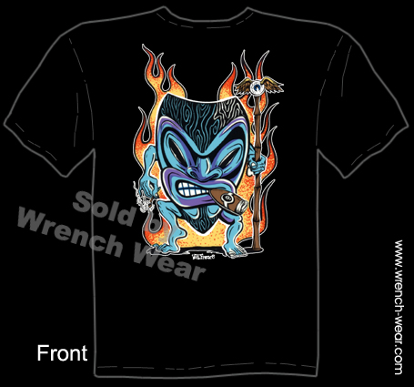 - 100% cotton Kustom Kulture Clothes Tattoo Apparel is comfortable, durable, and preshrunk. - Silk screen artwork on this Smokin' Tiki T Shirt for detail and longevity. - Kustom Kulture Clothes Tattoo Apparel design is on FRONT. - Color of Smokin' Tiki T Shirt is BLACK. - Buy American... Kustom Kulture Clothes Tattoo Apparel is printed in the U.S. - Smokin' Tiki T Shirt brand varies... Hanes, Gilden, Fruit Of The Loom. - New Kustom Kulture Clothes Tattoo Apparel arrives folded and bagged.Smokin' Tiki T Shirt Description: