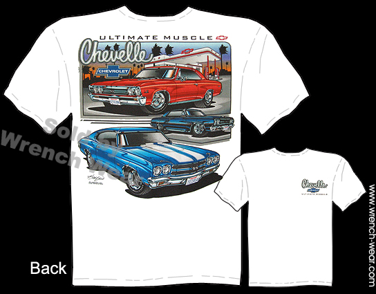 - 100% cotton Chevrolet Tee 65 67 70 Muscle Car T Shirt is comfortable, durable, and preshrunk. - Silk screen artwork on this 1965 1967 1970 SS Chevelle Shirt for detail and longevity. - Chevrolet Tee 65 67 70 Muscle Car T Shirt design is on BACK. Small design on chest. - Color of 1965 1967 1970 SS Chevelle Shirt is WHITE. - Buy American... Chevrolet Tee 65 67 70 Muscle Car T Shirt is printed in the U.S. - 1965 1967 1970 SS Chevelle Shirt brand varies... Hanes, Gilden, Fruit Of The Loom. - New Chevrolet Tee 65 67 70 Muscle Car T Shirt arrives folded and bagged.1965 1967 1970 SS Chevelle Shirt Description: