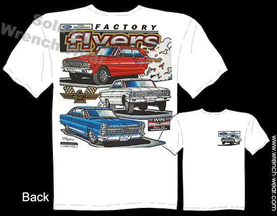 - 100% cotton Factory Flyers Vintage Drag Racing Tee is comfortable, durable, and preshrunk. - Silk screen artwork on this Ford Racing Shirt Muscle Car Tshirt for detail and longevity. - Factory Flyers Vintage Drag Racing Tee design is on BACK. Small design on chest. - Color of Ford Racing Shirt Muscle Car Tshirt is WHITE. - Buy American... Factory Flyers Vintage Drag Racing Tee is printed in the U.S. - Ford Racing Shirt Muscle Car Tshirt brand varies... Hanes, Gilden, Fruit Of The Loom. - New Factory Flyers Vintage Drag Racing Tee arrives folded and bagged.Ford Racing Shirt Muscle Car Tshirt Description: