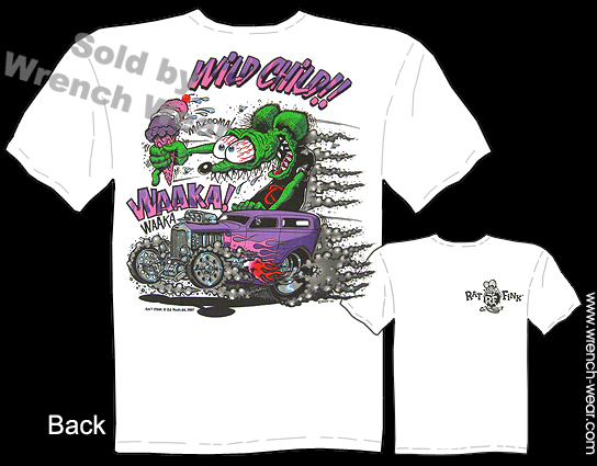 - 100% cotton Big Daddy Shirt 1932 Ford Ed Roth Shirt is comfortable, durable, and preshrunk. - Silk screen artwork on this Wild Child Ratfink T Shirt for detail and longevity. - Big Daddy Shirt 1932 Ford Ed Roth Shirt design is on BACK. Small design on chest. - Color of Wild Child Ratfink T Shirt is WHITE. - Buy American... Big Daddy Shirt 1932 Ford Ed Roth Shirt is printed in the U.S. - Wild Child Ratfink T Shirt brand varies... Hanes, Gilden, Fruit Of The Loom. - New Big Daddy Shirt 1932 Ford Ed Roth Shirt arrives folded and bagged.Wild Child Ratfink T Shirt Description: