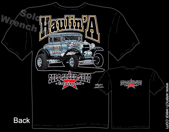 - 100% cotton 1930 1931 Solo Speed Shop T Shirt is comfortable, durable, and preshrunk. - Silk screen artwork on this 30 31 Ford Gasser Haulin A Hot Rod Tee for detail and longevity. - 1930 1931 Solo Speed Shop T Shirt design is on BACK. Small design on chest. - Color of 30 31 Ford Gasser Haulin A Hot Rod Tee is BLACK. - Buy American... 1930 1931 Solo Speed Shop T Shirt is printed in the U.S. - 30 31 Ford Gasser Haulin A Hot Rod Tee brand varies... Hanes, Gilden, Fruit Of The Loom. - New 1930 1931 Solo Speed Shop T Shirt arrives folded and bagged.30 31 Ford Gasser Haulin A Hot Rod Tee Description: